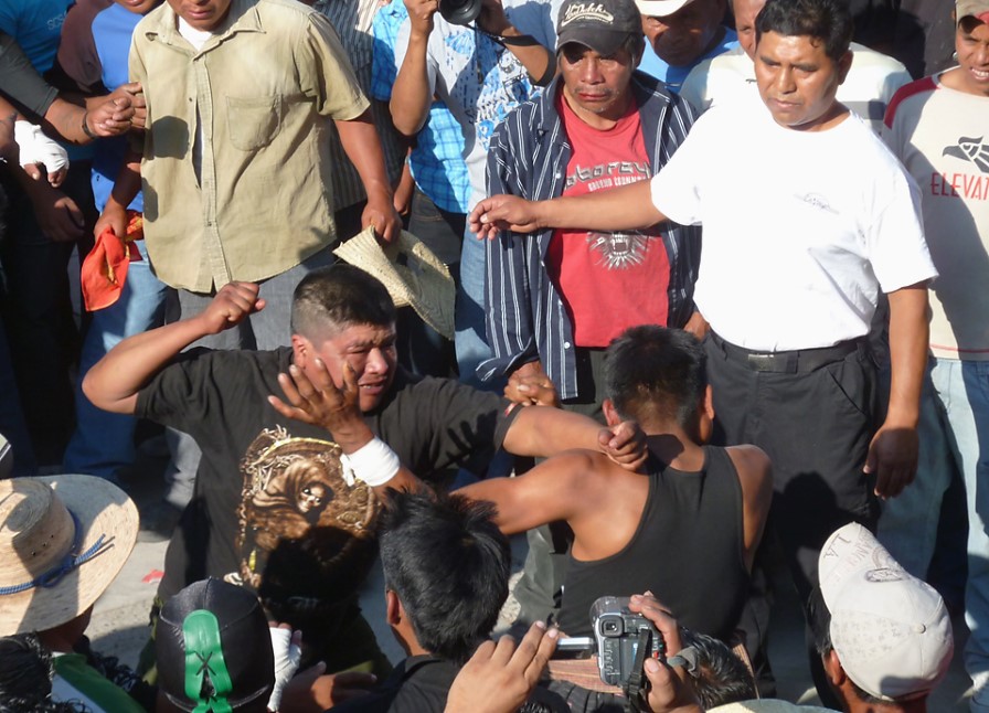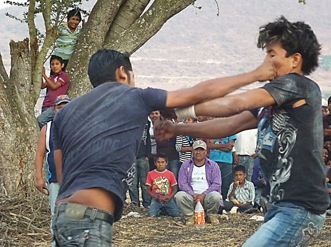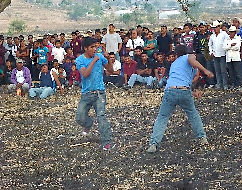 En la región de Zitlala, en México, tienen lugar varias veces al año peleas rituales en las que los protagonistas se enfrentan por parejas en un intercambio de golpes reales, sin buscar la dominación ni la aniquilación física del adversario. A partir del estudio de este caso empírico —lejos de ser una singularidad regional— intentaremos, en este artículo, identificar las características específicas de estas formas de enfrentamiento inspirándonos en la noción de «juego». A continuación, veremos cómo y en qué medida estos enfrentamientos, claramente delimitados en el espacio y en el tiempo, no son combates ficticios o simples simulacros, sino que proceden de una acción auténtica dentro de un espacio ficcional que crea las condiciones para la construcción de otra realidad en la que el intercambio de golpes adquiere un significado distintivo.